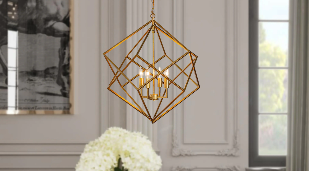 Comment intégrer le lustre patchwork géométrique en or champagne dans votre décoration intérieure